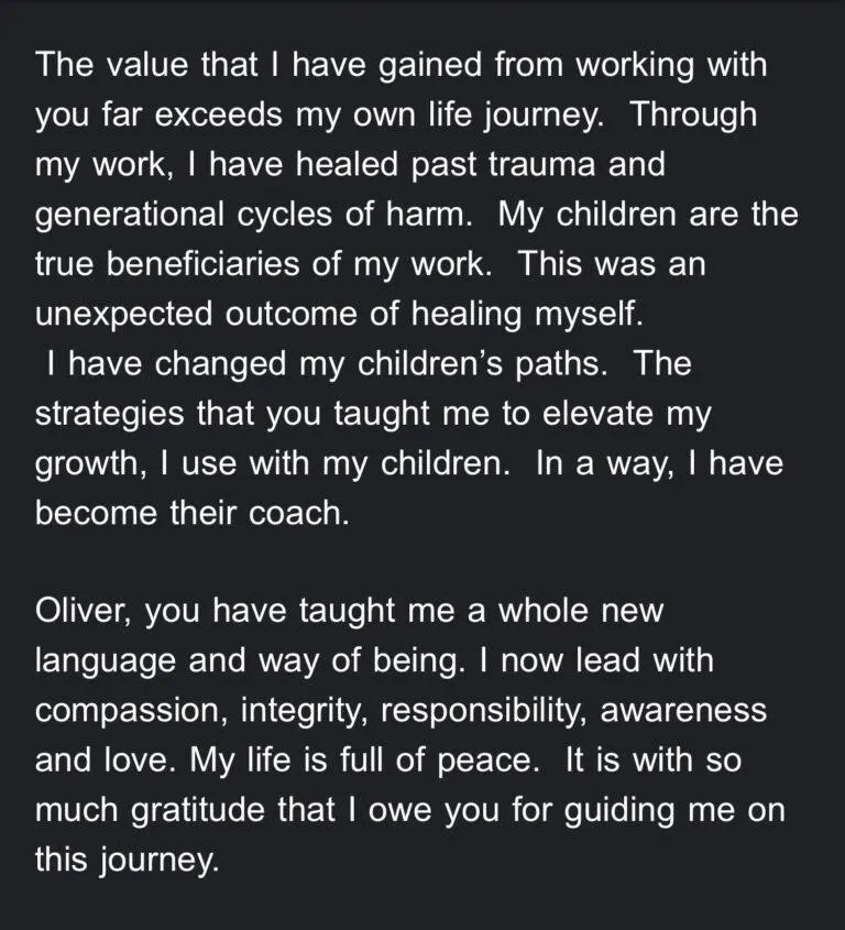 With the support of wise mentors and transformative practices, Oliver rebuilt his life from spiritual bankruptcy into one of peaceful prosperity—doing the work he’s called to do, serving others deeply, and building a business that aligns with his values.